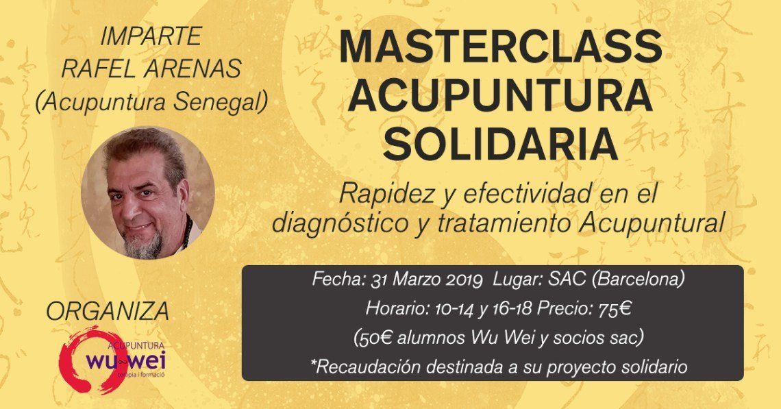 Acupuntura Wu Wei tiene el placer de presentar por primera vez en España una masterclass impartida por Rafel Arenas, fundador de Acupuntura Senegal. Rafel Arenas trata una media de 50 pacientes cada día desde hace más de 10 años con acupuntura. Con una clínica que consume más de 150.000 agujas al año, su nivel de […]